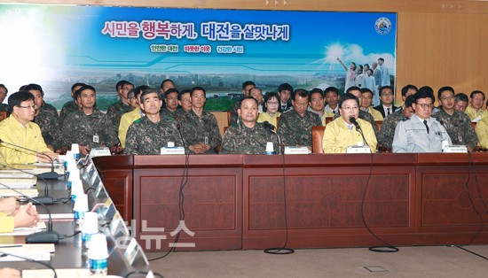 대전시는 10월 31일(금) 11:30분 국가 위기관리 연습 및 후방지역 종합훈련을 위해 27일부터 30일까지 4일간 실시한‘2014 충무훈련 및 화랑훈련’강평회를 개최했다.