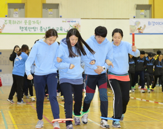 이날 행사에서는 특수교육사랑 한마음선서를 시작으로 특수팀과 교육팀으로 나누어 4인5각 릴레이, 단체줄넘기, 줄다리기, OX 퀴즈 등 다양한 체육활동을 펼치며 충남 특수교육 발전 방안에 대해 함께 생각해보는 시간을 가졌다.