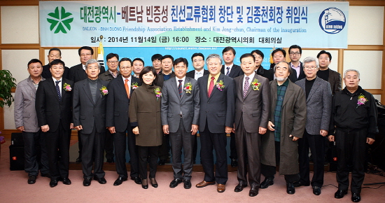 대전광역시의회 김종천 산업건설위원장(새정치민주연합, 서구 제5선거구)은 14일 시의회 대회의실에서 『대전시-베트남 빈증성 국제친선교류 협회』창립총회를 개최했다.