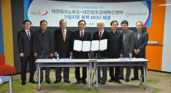 대전시는 대전창조경제혁신센터(센터장 송락경)와 대전 테크노파크(원장대행 윤석무)가 지역 중소·벤처기업의 국내·외 경쟁력 향상을 위해 25일(화) 대전창조경제혁신센터에서‘중소·벤처기업 육성을 위한 업무 협약’을 체결했다고 밝혔다.