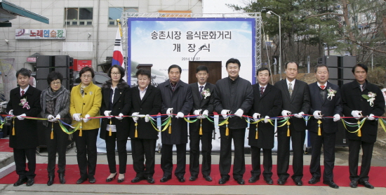 대전 대덕구가 7일 송촌시장에서 박수범 대덕구청장을 비롯해 정용기 국회의원, 김태훈 상인회장 등이 참석한 가운데 '음식문화거리 개장식'을 가졌다.