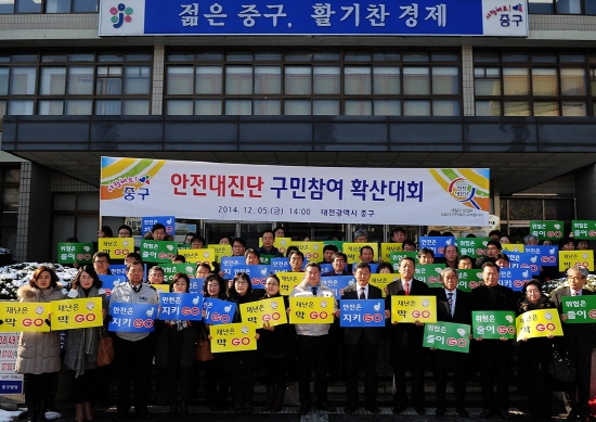 대전 중구(구청장 박용갑)는 5일 중구청에서 “안전대진단 구민참여 확산대회”를 개최했다. 이번 행사는 ‘안전문화운동 추진 중구협의회(이하 안문협) 간담회’와 안전대진단 구민참여 확산대회‘로 나누어 열렸다.