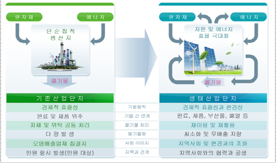 한편, 산업통상자원부에서 주관하고 한국산업단지공단에서 추진하는 EIP 사업은 2006년부터 5개년 단위로 2차에 걸쳐 9개 광역지자체가 참여하여 폐자원 재활용에 따른 경제적 효과와 폐기물, 온실가스(CO2) 저감 등 환경적 효과 및 관련기업 창업으로 일자리 창출 등의 사회적 효과를 거두고 있으며 이번