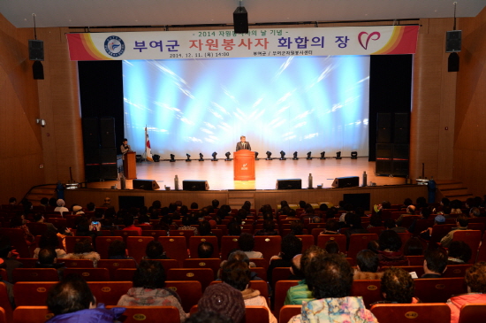 부여군(군수 이용우)은 지난 11일 오후 국립부여박물관 사비마루에서 군내 자원봉사자 400여명이 참석한 가운데 자원봉사를 통한 희망을 나누는 사회분위기 조성을 위한 ‘2014년 자원봉사자의 날 기념행사’를 성황리에 개최했다.