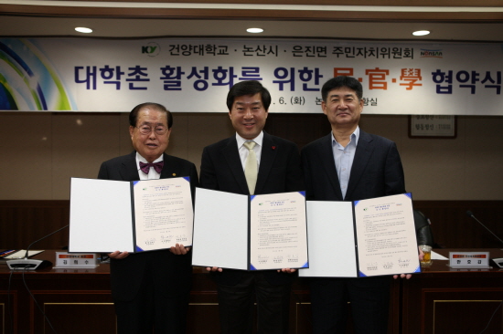 논산시·건양대학교·은진면 주민자치위원회가 ‘지역과 대학이 공존해야 대한민국이 바뀐다‘는 필생의 각오로 지역경제 활성화를 통한 상생발전에 한마음으로 손을 잡았다.