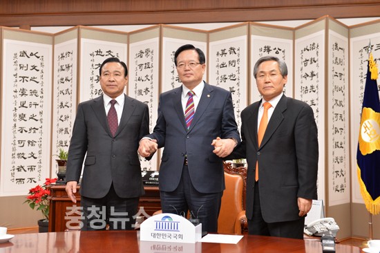 정의화 국회의장은  8일 오후 3시 의장집무실에서 이완구 새누리당 원내대표와 우윤근 새정치민주연합 원내대표를 만나 신년인사 및 면담을 가졌다.