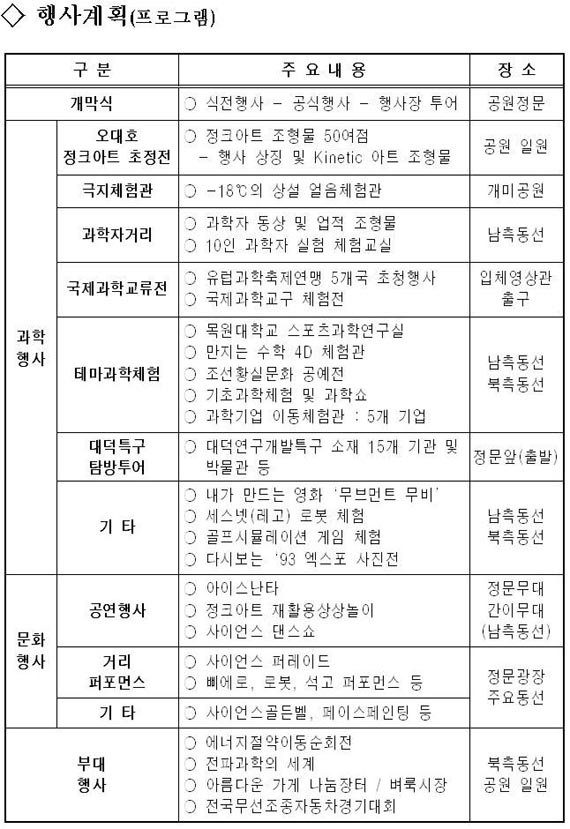 21일까지 엑스포과학공원과 대덕연구단지 일원에서