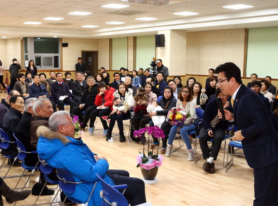 특히 이번 연두방문에는 각 동별로 현안이 되는 주요 사업 2~3개씩을 선정해 주민과 토크쇼 형식으로 발전방향을 모색하는 시간도 갖을 예정인데, 이날 진잠동에서는 계산동 수통골 주차장 조성 사업과 진잠보건소 신축, 진잠천 고향의 강 사업 등에 대해 다양한 의견을 나누는 교류의 장이 됐다.
