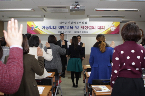 태안군이 관내 어린이집 원장들을 대상으로 아동학대 방지 결의대회를 열고 아동 인권보호에 대한 어린이집의 자발적인 참여를 유도했다.