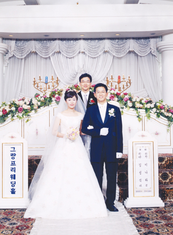 교수의 방 벽면에는 주례사진이 몇 장 있는데 이들 대부분은 김 교수로부터 장학금을 받고 학업을 마친 제자들이다. 그런식으로 한 두 번 서다 보니