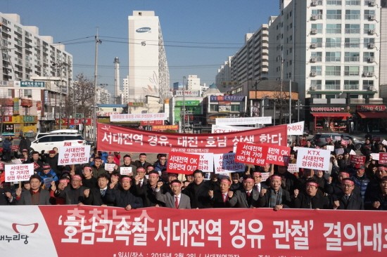 새누리당 대전시당(위원장 이영규)은 2일(월) 오후 3시 서대전역 광장에서 <호남고속철 서대전역 경유 관철 결의대회>를 열고 ‘관철과 증편’을 강력히 촉구했다.