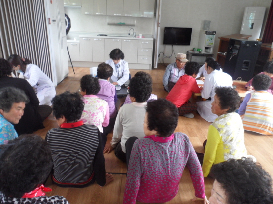 프로그램은 기초검사(혈압, 혈당, 콜레스테롤), 중풍 및 골관절질환 예방교육, 웃음치료, 한방기공체조(태극권, 요가), 발맛사지, 워킹매트운동 등을 통해 어르신들의 신체기능 강화와 질환관리 능력 향상을 도모한다.