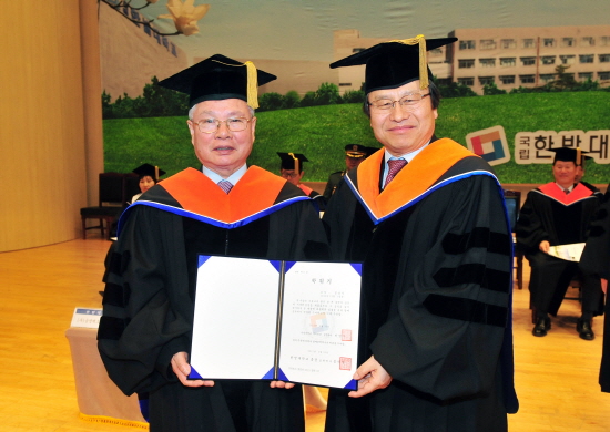 (주)금성백조주택 정성욱 회장이 25일 오전 10시 30분, 한밭대학교 문화예술관에서 열린 2014 학위수여식에서 명예공학박사학위를 송하영 총장으로부터 받았다.