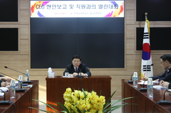 이상무 한국농어촌공사 사장은 4일 충남지역본부를 방문 ‘2015년 충남지역 추진방향을 보고 받고 직원 소통의 시간을 가졌다.