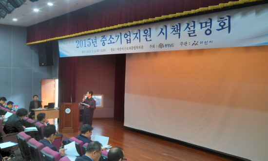 아산시가 경기 침체로 어려움을 겪는 중소기업들을 돕기 위해 ‘2015년 중소기업 시책 설명회’를 개최했다.