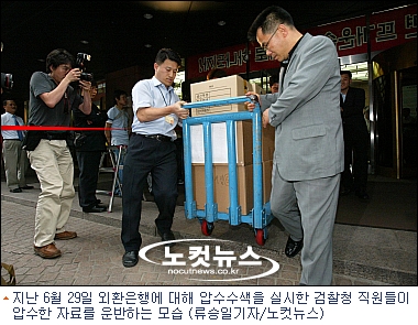 압수수색하며 은행 매각과 관련한 정부기관을 직접 압박하고 나섰다.외환은행 헐값 매각 의혹을 수사중인 대검찰청 중앙수사부가은행 매각과 관련된 핵심 정부기관을 상대로 조사의 강도를 높이고 있다. 검찰은 11일 금융감독위원회와 금융감독원에 검사와 수사관을 보내 외환은행 매각과 관련한 자료들을 넘겨받아 분석중이다. 앞서 검찰은 지난 10일에도 재경부에 검사 6명과 수사관 23명을 보내 5상자 분량의 서류와 컴퓨터 등을 확보했다. 이에 대해 대검찰청 채동욱 수사기획관은 "업무에 지장을 주지 않기 위해 따로 영장을 발부받지 않았으며 업무 시간이 끝날 무렵 검사와 수사관을 보내현장에서 필요한 자료를 선별했다"고 밝혔다. 사실상의 압수수색을 벌인 것으로, 외환은행 매각에 대한 수사가 시작된 지난 3월 이후 검찰이 정부기관을 상대로 강도 높은 자료 확보 작업을 벌인 것은 이번이 처음이다. 이와 관련해 검찰은 이미 구속된 변양호 전 재경부 금융정책국장을 포함해 외환은행 매각에 관여한 재경부 실무자들을 최근 잇따라 소환 조사했다. 하지만 변씨 등이 수사에 비협조적인 태도를 보이고 있어 매각에 관여한 정부기관을 직접 압박하면서 매각 과정에 불법은 없었는지를 조사하기로 한 것으로 보인다. 당초 지난달 말쯤 수사를 마무리할 수 있을 것 같다던 검찰은 현재 수사가 언제쯤 끝날지 짐작조차 하기 어렵다고 밝혀 쉽게 풀리지 않는 수사에 답답한 속내를 감추지 않고 있다. |
