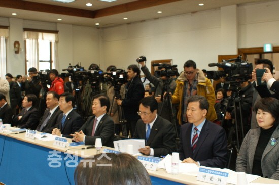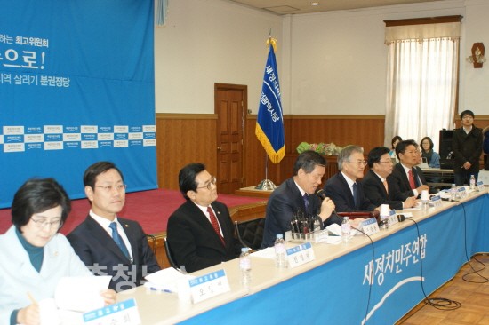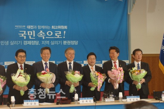 새정치민주연합이 11일 대전을 방문해 구 충남도청 회의실에서 최고위원회의를 열고 권선택 대전시장의 선고공판을 앞두고 지원사격에 나섰다.
