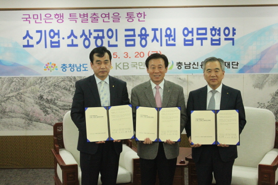 충남도가 국민은행, 충남신용보증재단과 업무협약을 맺고 도내 소기업과 소상공인을 대상으로 금융지원에 나선다.
