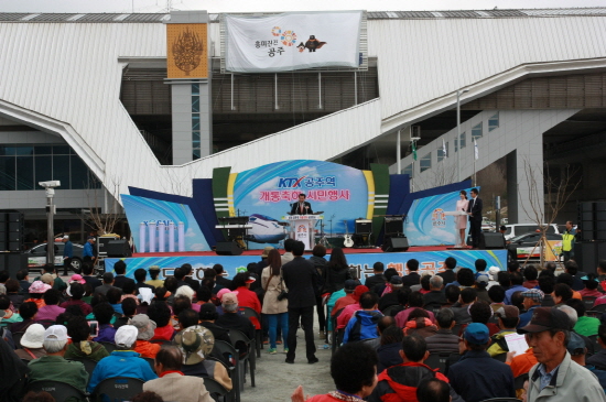 KTX 호남고속철도가 4월 2일 운영이 개시되면서 우리나라 철도 역사 이래 116년 만에 철도시대를 맞은 공주시에서는 역사적인 순간을 기념하기 위한 축하행사가 열렸다.