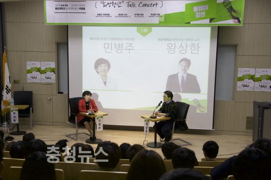 새누리당 민병주 국회의원(대전 유성당협위원장)이 지난 4일 충남대에서 열린 청년실업 11.1%와 100만명 시대와 관련된 희망청년 토크콘서트에서 “그동안 살면서 여러 어려움이 있었지만 긍정의 마음으로 극복할 수 있었다”며 “긍정의 마음이 넘쳐야 실패를 하더라도 재도전할 수 있다”고 밝혔다.