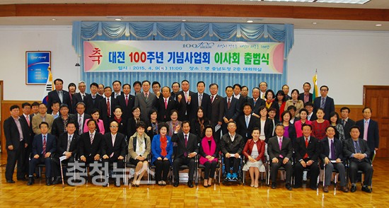 “대전의 정체성확립과 시민의 화합을 도모하고 꽃과 숲 등 환경사랑을 통한 관광의 활성화, 예체능의 생활화와 예절, 칭찬, 친절로 행복한 세계시민”란 슬로건으로 하는 ““대전 100주년기념 사업회 이사회”가 9일 옛 충남도청 대회의실에서 출범했다.