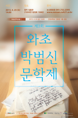 또 문학제 일환으로 4월 24일(금) 오후 2시에는 건양대학교 인문관 강당 1층에서 제1회 와초문학포럼이 개최된다.