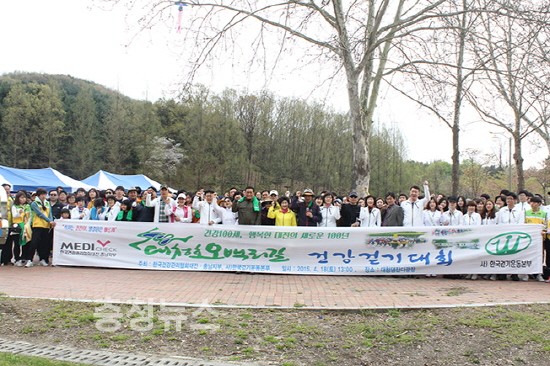 4월 보건의 달을 맞아 한국건강관리협회대전·충남지부(본부장 정순덕) 와 사단법인 한국걷기운동본부(이사장 이창기)가 공동주최한 대청호오백리길 걷기대회가 “건강백세, 행복한 대전의 새로운 100년”이란 슬로건으로 18일 13:00부터 대청호반의 건강코스(4Km)구간에서 대전시민 2천여명이 참여한 가운데 실시됐다.