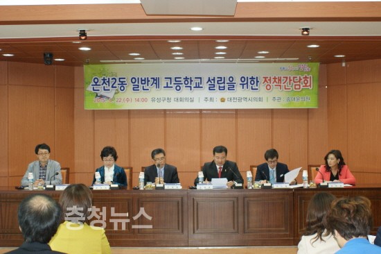 대전시의회(의장 김인식)는 22일 유성구청 대회의실에서 송대윤 의원 주관으로 “온천2동 일반계 고등학교 설립”을 위해 관계기관 간담회를 개최했다.