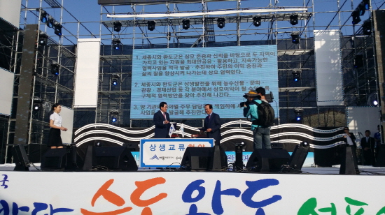 세종시 참석자들은 이날 협약식에 이어 완도군이 주관하는 ‘청정바다 수도 완도’선포식과‘2015 완도장보고 수산물축제 개막식’에 참석했다.