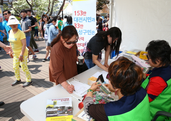 이번 서명 운동은 유성온천문화축제 개막일인 지난 8일 행사장을 시작으로 향후 지하철역과 주요 거리, 각종 행사장 등에서 진행할 예정이다.