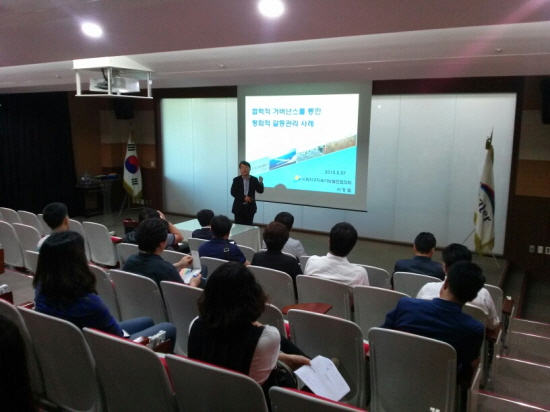 이날 시화호조력발전소에서 진행된 특강에서 시화지구지속가능발전협의회 서정철 위원장은 ▲협의회 구성 및 운영개요 ▲분과별 주요성과 ▲협의회 구성 제안 배경 ▲사회적 합의 요인 등 ‘협력적 거버넌스를 통한 평화적 갈등해결 사례’를 설명했다.