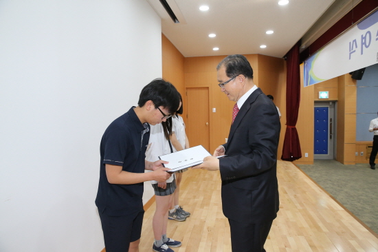 그동안의 수여식에는 장학금 수여 대상 학생 모두가 참석해왔으나 이날 행사는 학업에 지장을 주지 않고 행사 간소화를 지향하기 위해 대표 학생 40명만이 참석해 장학증서를 받았다.