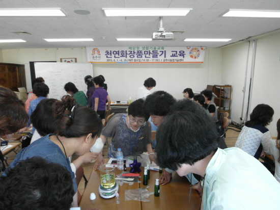 공주시(시장 오시덕)가 웰빙 시대에 발 맞춰 천연재료를 이용해 시민을 대상으로 진행하고 있는 천연화장품 만들기 교육이 큰 인기를 얻고 있다.