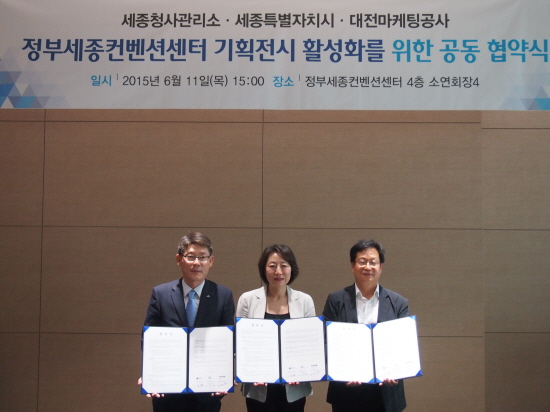 세종특별자치시(시장 이춘희, 이하 세종시)가 11일 정부 컨벤션센터에서 세종청사관리소, 대전 마케팅공사와 기획전시 활성화를 위한 공동업무협약을 체결했다.
