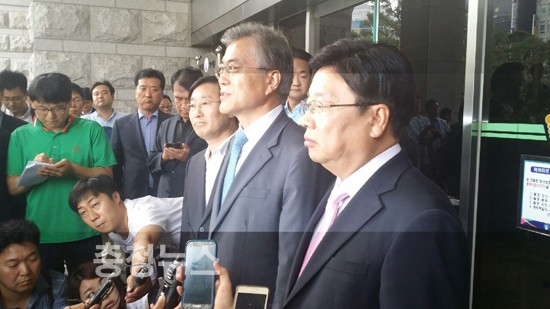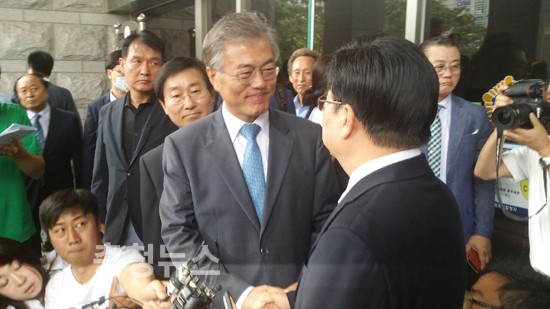 ▲ 새정치민주연합 문재인 대표가 권선택 시장과 대전고등법원 입구에서 억울함을 호소했다