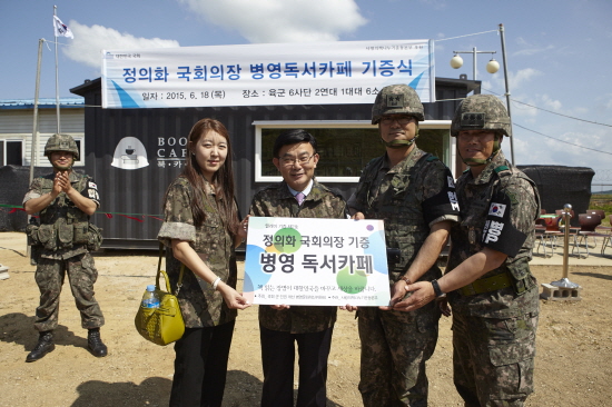 정의화 국회의장은 6월 18일(목) 오후3시 강원도 철원에 위치한 6사단 2연대 1대대에 컨테이너형 병영 독서카페를 기증했다.