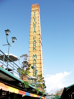 이 공원의 맞은 편에 우뚝솟은 오래된 벽돌 굴뚝이 눈에 띈다. 이 굴뚝이 유명한 빅토리아 파크마켓의 상징물이다. 본래 쓰레기 소각장으로 쓰였던