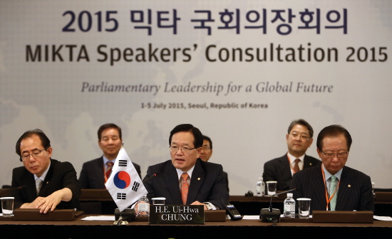 정의화 국회의장은 7월 2일(목) 오전 8시 30분 웨스턴조선 호텔 오키드룸에서 열린 2015 믹타(MIKTA : Mexico, Indonesia, Korea, Turkey, Australia) 국회의장회의 개회식을 주최했다.