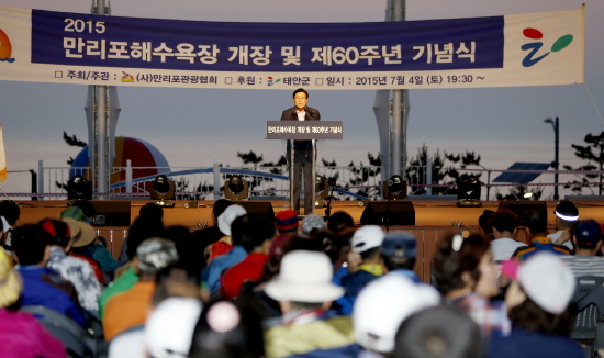 군은 4일 소원면 만리포해수욕장 상설무대에서 한상기 군수를 비롯한 내빈, 주민, 관광객 등 1000여 명이 참석한 가운데 ‘만리포 해수욕장 60주년 선포식 및 개장식’이 열렸다고 밝혔다.