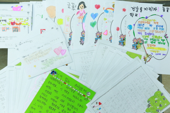 지난 6월 29일(월) 세종시 나성어린이집 나래반을 시작으로, 1일(수) 송촌초등학교 2학년 학생들 그리고 6일(월) 글꽃초등학교 어린이회장이 이백여통의 손편지를 충남대학교병원에 전달했다.