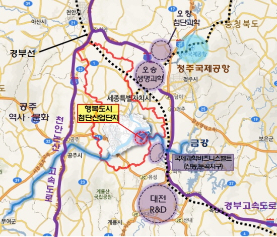 75만 ㎡ 규모의 도시첨단산업단지는 인근 대덕연구개발특구 및 오송생명과학단지의 중간지점에 위치했으며, 연접해서는 156만 ㎡의 대학부지가 있어 연구소와 과학기술인력 활용 등 향후 입주기업의 경쟁력을 크게 높일 것으로 전망된다.