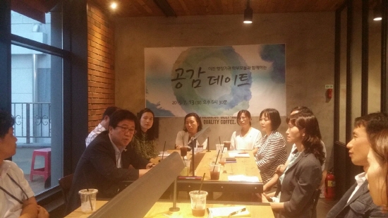 격식을 차리지 않고 편안한 분위기에서 진행된 공감데이트에서 이전기관 공무원들은 유치원 취원의 어려움, 중학교 배정, 비좁은 학교운동장 등의 이전에 따른 애로사항들을 풀어놓는 반면, 고교평준화 제도 등 자녀의 교육환경에 대한 궁금증도 대부분 해소했다.