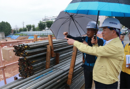 이번 점검은 지난해 대형화재로 인해 재건축 중인 대화동 아모레퍼시픽 토목공사 현장과 대청호길 급경사지를 방문해 집중호우에 대비한 공사장 안전관리실태와 재난취약시설에 대한 불안전 요인 등을 직접 점검했다.