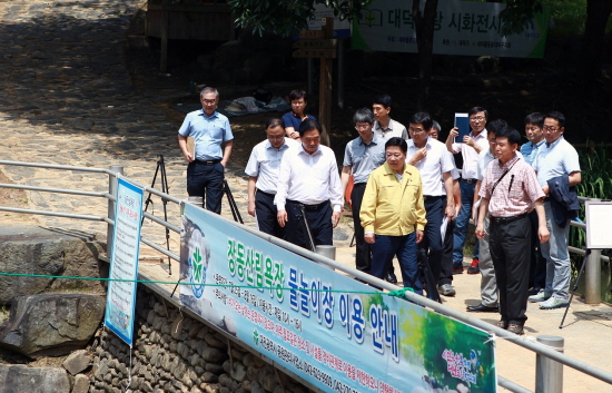 먼저 권 시장은 지난 25일 개장한 장동산림욕장 물놀이장 현장을 방문한 자리에서 공원관리사업소장으로부터 안전관리대책에 대한 보고를 청취하고 물놀이시설 현장점검과 함께 안전요원들을 격려했다.