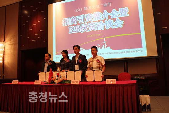 대전시(시장 권선택)는 대전상공회의소(회장 박희원)와 함께 7월 27일부터 4박 5일 간 추진한 중국투자유치활동이 갑자기 더워진 칭다오시의 날씨처럼(33 ~ 34℃ / 평균 27 ~ 28℃ ) 뜨거운 열기 속에 성황리에 끝마쳤다고 3일 밝혔다.