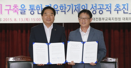 대덕구(구청장 박수범)와 대전동부교육지원청(교육장 김승현)은 13일 동부교육지원청 대회의실에서 자유학기제 운영 활성화를 위한 상호 업무협력 협약을 체결했다.