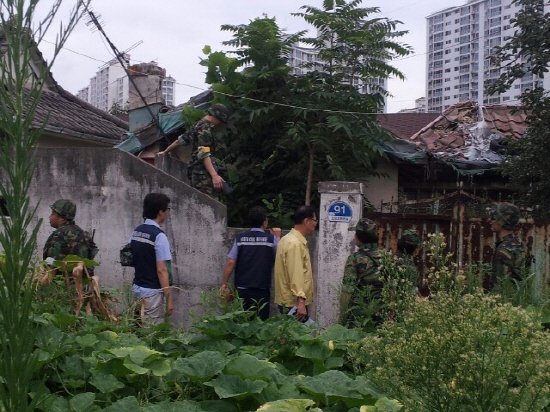 대전 동구(구청장 한현택)는 20일, 을지훈련 일환으로 효동의 주택밀집지역에 적 특수부대원이 침투했다는 가정 하에 505여단 1대대와 함께 주관한 합동 수색정찰 훈련을 실시했다.