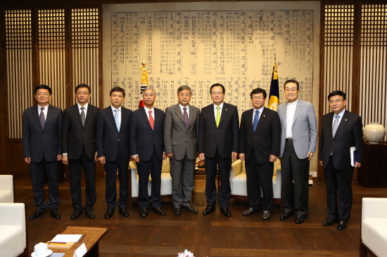 정의화 국회의장은 8.25(화) 오후 4시 의장접견실에서 궈슈칭(郭樹清) 중국 산둥성 성장을 만나, 한국과 산둥성간의 경제협력 등에 관한 심도 있는 대화를 나눴다.