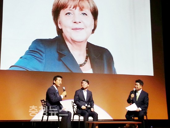 ▲ 대전 유성구에서 국회의원에 출마를 준비중인 前 MBC 정치부장 유럽지사장출신 최명길 당 대표 정무 특보가 메르켈 독일 총리의 리더십을 소개하고 있다