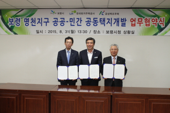 보령시는 명천지구의 성공적 사업진행을 위해 관련 업무를 지원하고, 한국토지주택공사는 보령명천지구 택지개발사업을 총괄하며, 금성백조주택은 조성공사를 성실히 시행하고 지역주민들에게 품격높은 아파트를 공급하기로 하였다. 이에 한국토지주택공사 이일상 대전충남지역본부장, 김동일 보령시장, 정성욱 금성백조주택 회장이 각각 협약서에 서명하였다.